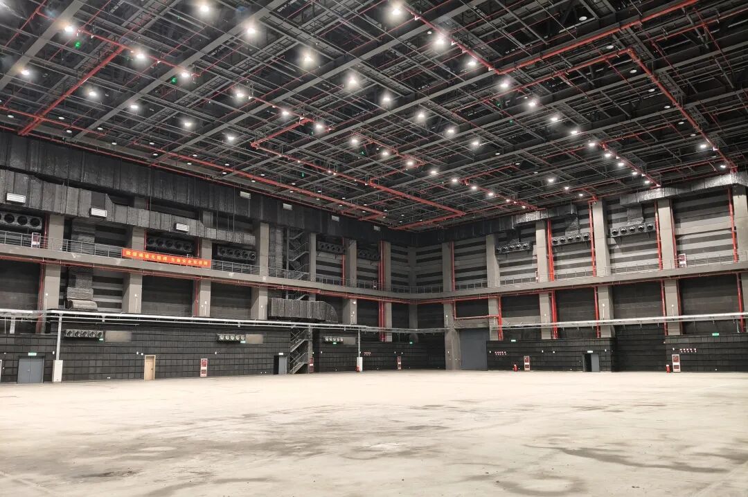基地一期建设完成8个高标准专业摄影棚,还配套打造了数字制作中心、审片室、录音棚、影视器材租赁中心、置景车间、综合服务中心,以及精品宿舍、精品公寓等设施,形成全方位、一站式的影视产业服务体系。其中,1个净棚面积约5000㎡、马道下净高 22 米的5K棚,硬件标准在国内同类规模摄影棚中处于前列,可满足大型实景搭建、精密特效拍摄等拍摄需求;3个净棚面积约3000㎡、马道下净高20米的3K主力棚,以及4个净棚面积在1200至1500㎡不等的小型影棚(1.5K棚、1.2K棚),多元化的空间布局,能灵活适配传统影视、商业大片、综艺、广告、MV、虚拟直播等各类音视频内容的生产需求,为影视创作提供了扎实的场地支撑。