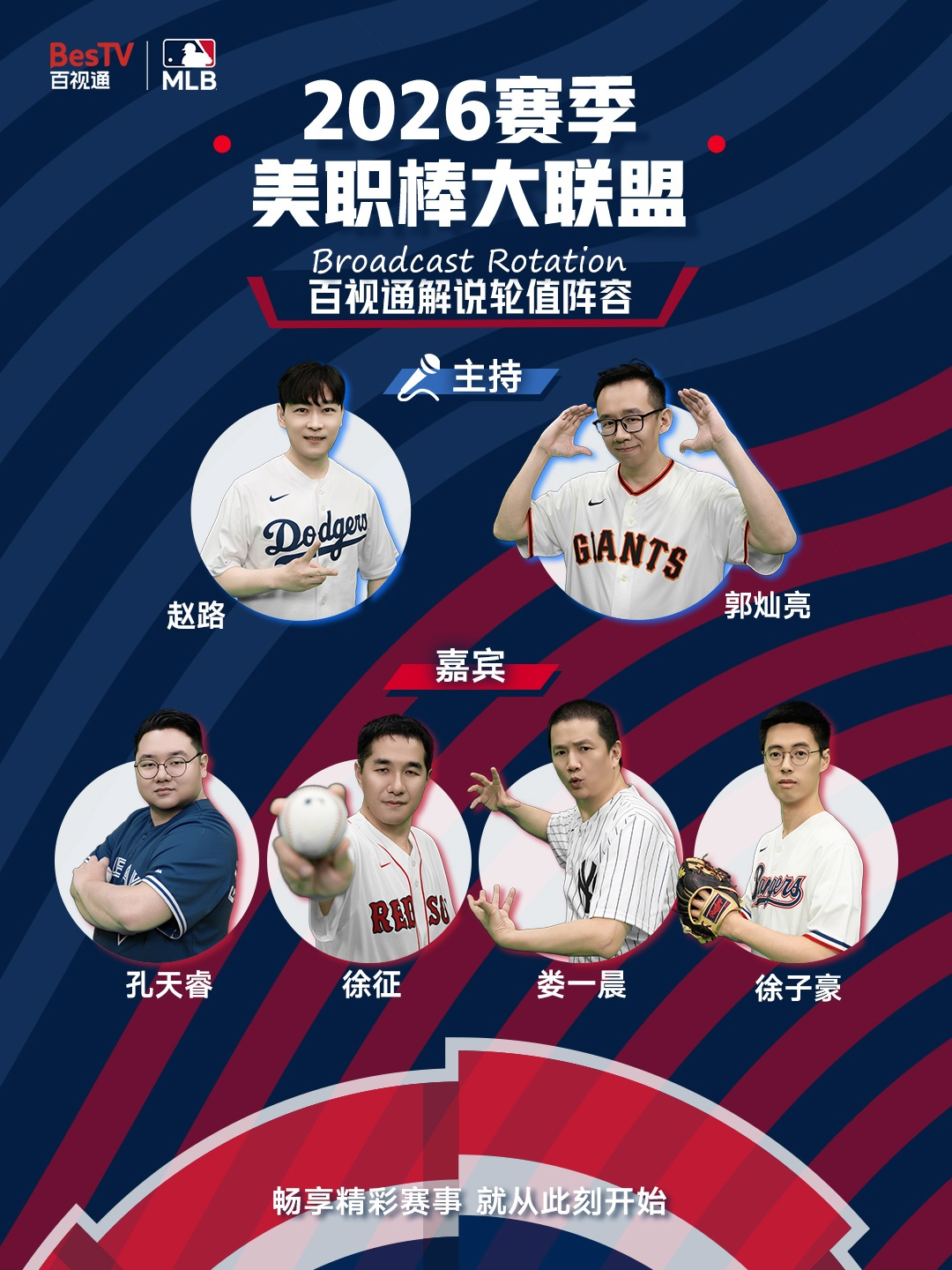 北京时间3月26日,美国职棒大联盟(MLB)2026新赛季即将燃情启幕。步入双方战略合作的第六个赛季,东方明珠旗下百视通作为MLB在国内的重要合作平台,将以全方位升级的转播体验、多元化的高品质内容、沉浸式的互动观赛场景,通过IPTV、PC端等多平台全程高清直播新赛季精彩赛事,为全国棒球迷打造一场融合科技、热血与专业的棒球观赛盛宴。
