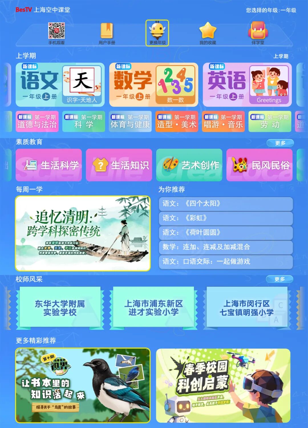 上线六年来,“上海空中课堂”持续迭代升级、深耕用户体验:从最初“直播+点播”的基础服务1.0版,到按年级、学科、知识点系统化归类编排;从推出12个年级专属首页、“校师佳课”优质师资专栏,到上线《名师面对面》、答题挑战、教育资讯等增值服务;再到实现课件文档大屏浏览、大屏英语有声互动等创新功能,平台不断满足课前预习、课后复习、自主学习、个性化提升等多元需求。截至目前,通过有线电视、IPTV、OTT等多渠道累计保障“空中课堂”安全播出超9410万小时,累计播出课程22233节,内容时长超过45万分钟,累计服务播放用户超过1亿台终端,播放访客人次近1.9亿,月均播放用户稳定在百万以上(140万用户/月),为上海基础教育数字化转型提供了坚实可靠的支撑。