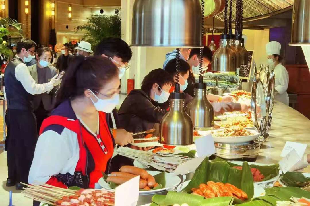 上海国际会议中心(东方滨江大酒店)与周边网红景点联动,全力打造集住、食、游、购一键畅享式的旅游度假地。这个假期,国宴大厨们精心准备了色香味俱全的琳琅美食:自助餐7种口味小龙虾无限畅吃;4楼浦江轩临江而立,外滩全景与国宴菜肴绝配享受;11楼的鱼香阁主打沪上本帮菜,口感地道,价廉物美。同时各餐厅倡导安全防疫,节俭光盘,将“味蕾与安心”完美融合。5月1日至3日,国际会议中心(东方滨江大酒店)客房满房,餐饮火爆,整体营业收入同比2019年增长超100%。