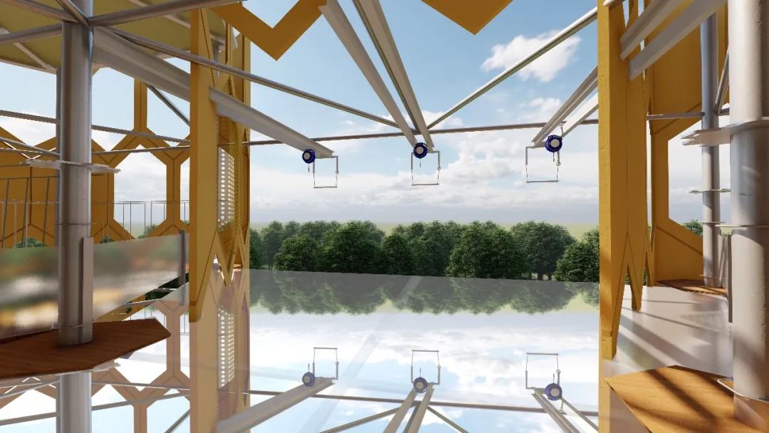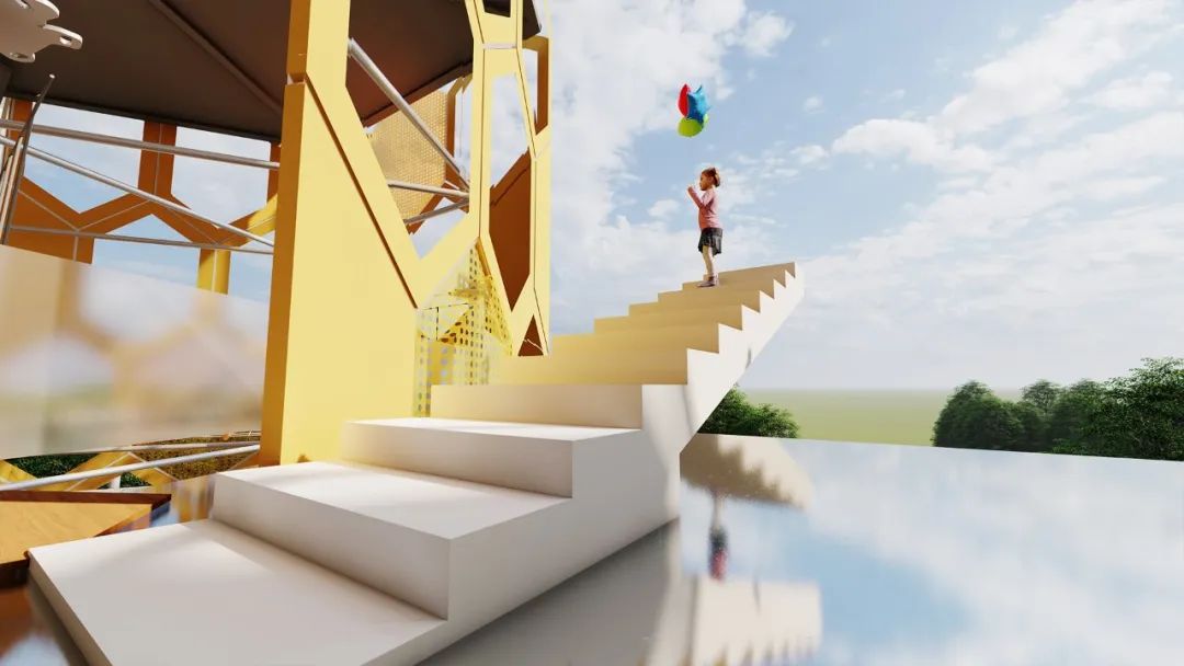 天空之镜,大面积的玻璃露台设计,使天空在玻璃露台上映射、交融,让人仿佛置身于云端之上,误入仙境之中。