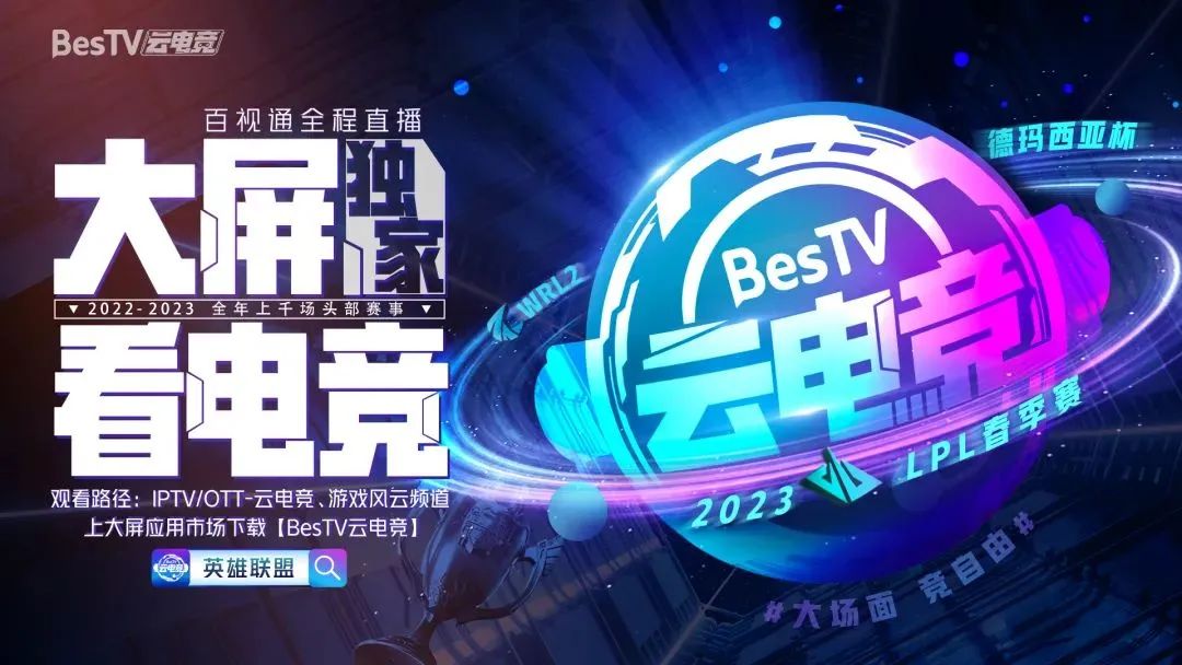 满足众多电竞爱好者需求的“BesTV云电竞”则汇集了英雄联盟、王者荣耀、炉石传说等一众热门IP。并且,作为英雄联盟 2022、2023 两个赛年的大屏独家合作伙伴,百视通将全程直播包括LPL春季赛、LPL夏季联赛、MSI 季中冠军杯、全球总决赛在内的全部官方赛事,让顶级电竞比赛得以走进客厅,走向家庭用户。