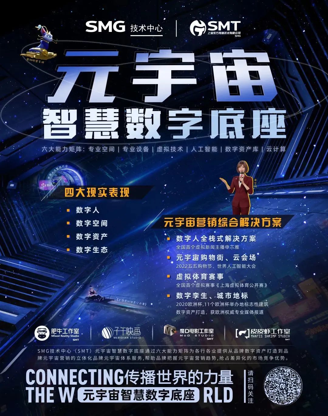技术中心的“元宇宙智慧数字底座”为创造元宇宙提供便捷高效的工具箱,通过六大能力矩阵为各行业提供从数字资产打造到元宇宙营销的立体化品牌元宇宙体系服务。