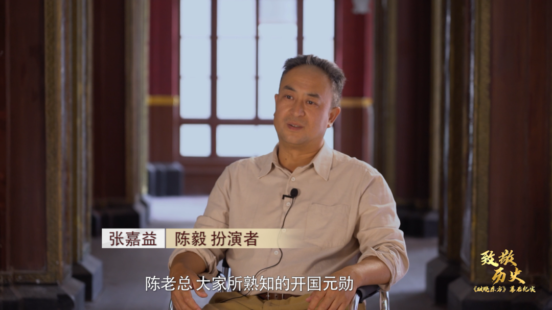 对于如何体现角色造型的还原度,纪录片中,主演张嘉益也将首次披露自己的创作感想:“在面对‘开国元勋’这样的角色时,压力还是很大的。”为了重点体现出人物的精神和灵魂,除了在外形上的靠近,张嘉益也要求自己更加深入地去了解原型人物的方方面面,去塑造一个更加鲜活、特点更加突出的陈毅。剧中的一众主要演员也将在纪录片里,讲述自己在拍摄过程中的真实感受和对角色的揣摩和思考。